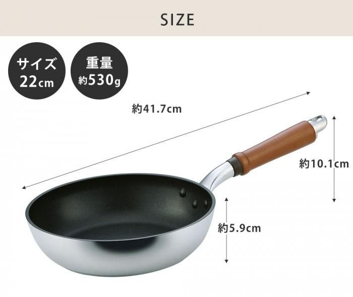 一点一点アルミを型に流し込んで作る「アルミキャスト」製のフライパン。強度が高く、耐久性に優れた「アルミ-マグネシウム合金」を使用。