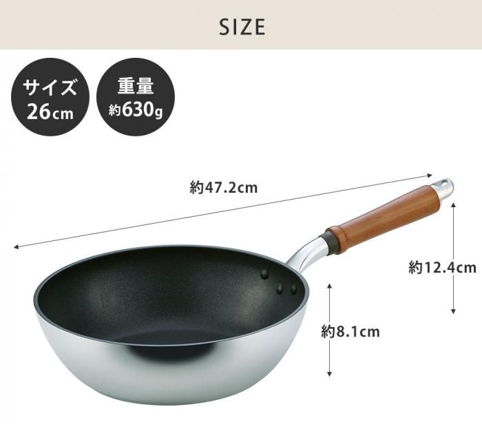 一点一点アルミを型に流し込んで作る「アルミキャスト」製のフライパン。強度が高く、耐久性に優れた「アルミ-マグネシウム合金」を使用。