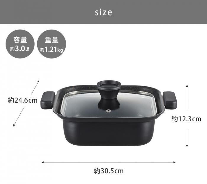 囲 角型卓上鍋 20cm KK-20W 送料無料 分類で探す キッチングッズ 鍋 両手鍋 ブランドで探す タマハシ 価格帯(税込) 2,000円台の商品 キッチン 送料無料 ラッピング承ります 丸型よりもたっぷり容量の角型形状 フチ付きでこぼれにくい卓上鍋tamahashi-kk-20w 2,420円(税込)0円 在庫入荷待ち角型卓上鍋 20cm2,420円(税込)2,420円(税込) 数量 カートに入れる 製品について性能詳細お買い物ガイドクロッカについて丸型よりもたっぷり容量の角型形状。フチ付きでこぼれにくい卓上鍋 内面はお手入れが楽なふっ素樹脂加工。蓋は調理中にも中の様子が確認できるガラス蓋です。蓋つまみはお玉や箸が置いておけるスペースになります。角型で丸形よりも約20%容量UP。フチ付きでこぼれにくい卓上鍋です。 サイズ約305×246×123mm 容量約3.0L 重量約1210g 材質・仕様本体:アルミニウム合金はり底:ステンレス鋼(クロム16%)底の厚さ2.5mm(はり底を含む)蓋:強化ガラス (全面物理強化)取っ手・つまみ:フェノール樹脂内面:ふっ素樹脂塗膜加工(マーブル加工)外面:焼付け塗装 生産国中国 備考IH電磁調理器対応 製造元タマハシRERATED ITEMS関連商品フルータスコレクション 両手鍋 18cm FTC-18W 富士ホーローフルータスコレクション 両手鍋 20cm FTC-20W 富士ホーロー