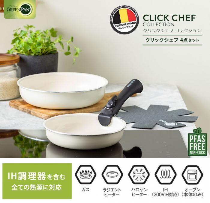 取っ手が取れるフライパン グリーンパン クリックシェフ