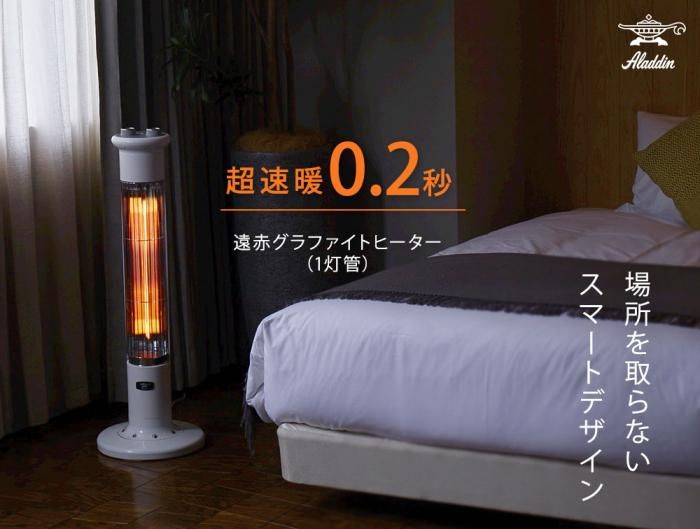 熱源には、アラジン独自の技術である「遠赤グラファイト」を使用。どんなに寒い環境でも、0.2秒で立ち上がるところが特長です。遠赤外線効果で、体の芯まで暖かさがずっと長持ち。
