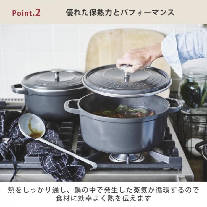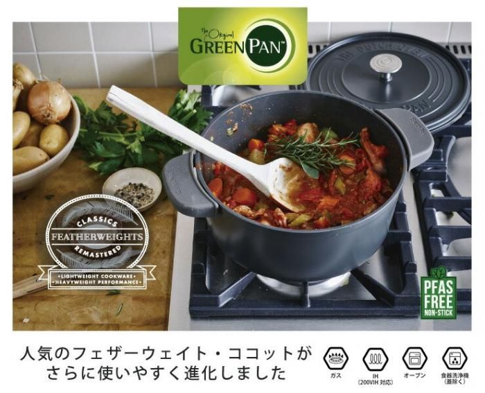 有害物質を一切使用していない調理器具を使った”ヘルシークッキング”を推奨しているグリーンパンの画期的なモデル「フェザーウェイト・ココット」は最新の技術とスタイリッシュなデザインのシリーズです。