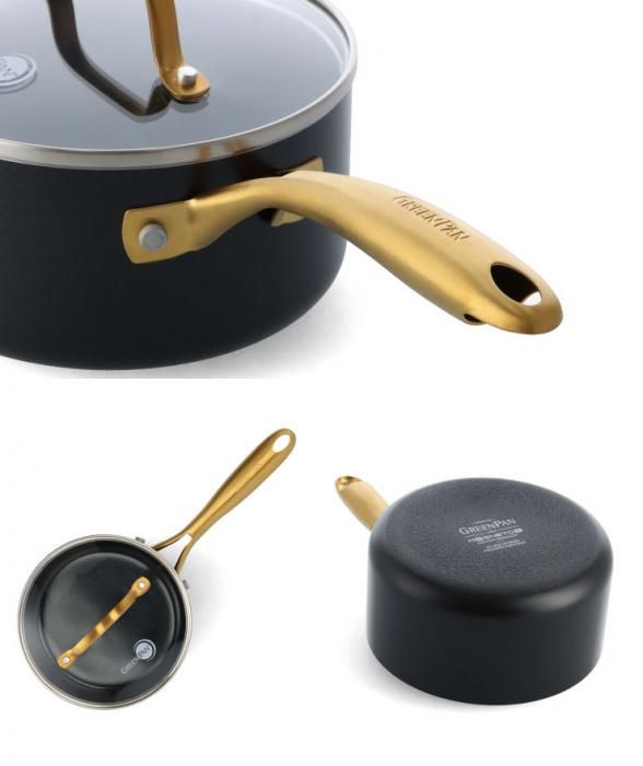 ブラックのボディとゴールドのハンドルの上品なデザインは調理後そのまま食卓にサービングするのもおすすめです。