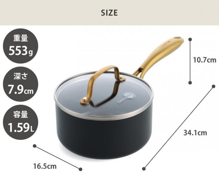 ノンスティック・セラミックコーティングが施され、熱伝導に優れたこびりつきにくいソースパン