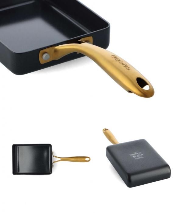 ブラックのボディとゴールドのハンドルの上品なデザインは調理後そのまま食卓にサービングするのもおすすめです。