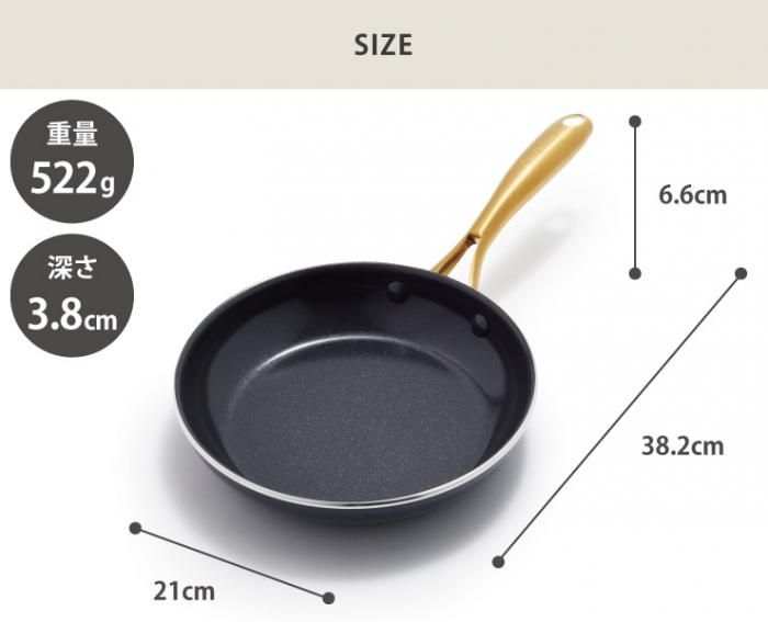 ノンスティック・セラミックコーティングが施され、熱伝導に優れたこびりつきにくいフライパン