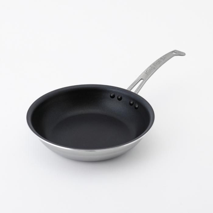 フライパン側面は磁力の反応に優れ耐食性の高い445M2ステンレス材を全面に使用。また、あいだには極厚2.6mmのアルミ材をはさむことにより熱ムラが少なく、側面までしっかり加熱されます。そのため、オムレツやパンケーキもきれいに仕上がります。