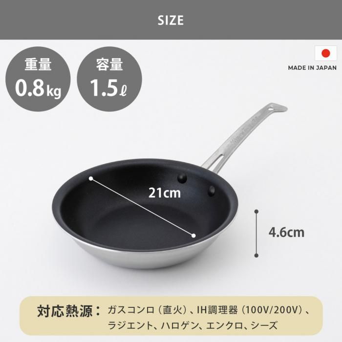 一流料理人ご用達の熱伝導性と耐久性に優れたフライパン 高効率ステンレスと極厚アルミの合金を使用 IH ガス両用 焼く 炒める 揚げる ほとんどの調理に使えます
