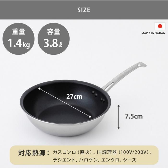 コーティングはセラミック配合の3層ハードフッ素樹脂加工で耐久性にも優れています。熱ムラが無くスピーディーに炒め物や炒め煮、パスタなどの料理が出来ます。