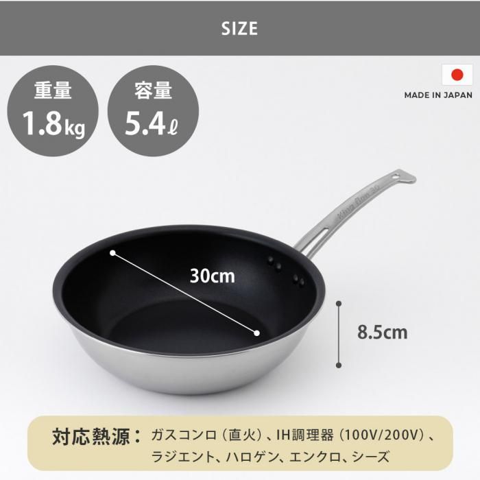 一流料理人ご用達の熱伝導性と耐久性に優れたフライパン 高効率ステンレスと極厚アルミの合金を使用 IH ガス両用 焼く 炒める 揚げる ほとんどの調理に使えます