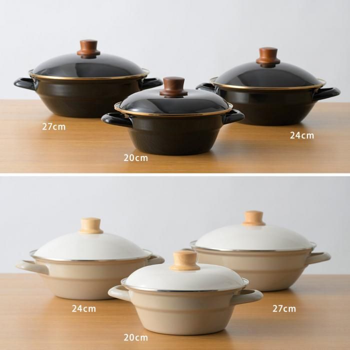富士ホーロー 琺瑯土鍋 24cm 2.8L HD-24 送料無料 分類で探す キッチングッズ 鍋 両手鍋 ブランドで探す 富士ホーロー 価格帯(税込) 3,000円台の商品 キッチン用品 送料無料 ラッピング承ります 食卓にそのまま出してもかわいい 土鍋風のホーロー鍋ですfuji-hd24 メーカー希望小売価格5,500円(税込) 3,630円(税込)0円 会員価格: 1,815円(税込) 50%off 在庫ブラック3,630円(税込)在庫なしグレージュ3,630円(税込)在庫なし SOLD OUT 製品について性能詳細お買い物ガイドクロッカについて食卓にそのまま出してもかわいい、土鍋風のホーロー鍋 食卓にそのまま出してもかわいい、土鍋風のホーロー鍋です。軽くて丈夫なホーロー鍋は熱効率が高く保温性も良いため、鍋料理に最適。トレンドのグレージュを使った、温かみを感じる色合いです。ガスはもちろん、IHでもお使いいただけます。 サイズ(約)W320×D225×H160mm 満水容量(約)2.8L 重量(約)1.45kg 材質ほうろう用鋼板(本体)、天然木(つまみ)、ステンレス(リング部分) 備考電子レンジ使用不可フタは食洗機不可 ホーローについて手作業で釉薬を掛けるため、ひとつひとつの表情には多少の個体差が生じます。ホーローの性質上、焼成時に黒点や色むらの様に見える部位が生じる場合がございます。本体フチ部分など、鋼板の切り口となる部分は釉薬がかかりにくく、下地の黒いスジが多少見られますが黒い部分もホーロー加工が施されております。上記の様な場合でも不良ではなくご使用には問題ございませんので安心してお使い下さい。 サイズ 容量20cm 2L 24cm 2.8L 27cm 3.8L製造元富士ホーロー -ふじほうろうふじほーろーRERATED ITEMS関連商品アメイロ AGEMONO 18アメイロ KONABE 12ビタクラフト ライト 無水調理両手鍋 21cmマイスター あわせ釜 20cm A-2211マイスター あわせ釜 24cm A-2212ビタクラフト ライト 無水調理両手鍋 24cm富士ホーロー 天ぷら鍋 ミニ 16cm CTP-16Wオークス コンパクトスチームポット17cm AUT1401長谷園 みそ汁鍋 大 直火専用