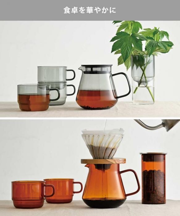 ハリオ カラーズ ティー&コーヒーサーバー HCT-600-AB/HCT-600-GR 送料無料 分類で探す キッチングッズ 食器・カトラリー コーヒー・お茶用品 コーヒーサーバー ブランドで探す ハリオ HARIO 価格帯(税込) 3,000円台の商品 キッチン用品 送料無料 ラッピング承ります コーヒーも紅茶も楽しめるメッシュ蓋の耐熱ガラス製サーバー コーヒーサーバーとして使用する場合は 「HARIO V60 02」のドリッパーにちょうどよいサイズ 本体のみ電子レンジOK hario-hct-600 3,850円(税込) 0円 在庫入荷待ちアンバー3,850円(税込)在庫なし3,850円(税込)在庫なしグレー3,850円(税込)在庫なし3,850円(税込)在庫なし SOLD OUT 製品について性能詳細お買い物ガイドクロッカについて コーヒーも紅茶も楽しめる耐熱ガラス製サーバー メッシュフィルター付きの蓋でティーも楽しめる耐熱ガラス製コーヒーサーバー。フタを外してコーヒーサーバーとして使用する場合は、「HARIO V60 02」のドリッパーにちょうどよいサイズ。サーバー本体は耐熱ガラス製でフタを外せば電子レンジでも使用できるので、飲み物の温め直しもできます。 食卓に彩りを添えるアンバーカラーとグレーカラーからお選びいただけます。 サイズ横15 × 縦11.8 × 高12.5cm 実用容量600ml 重量約218g 材質本体:耐熱ガラス(耐熱温度差120℃)フタ,フィルター:ポリプロピレン(耐熱温度140℃)パッキン:シリコーンゴム(耐熱温度180℃) 生産国本体:中国フタ,フィルター,パッキン:日本日本で品質管理し、組み立てを行っております。 備考 食器洗浄乾燥機使用可 フタを外して、電子レンジ使用可 お手入れの際は研磨剤入りたわし、金属たわしやクレンザーなどを使用しないでください。 製造元HARIO ハリオRERATED ITEMS関連商品及源鋳造 OIGEN南部鉄器 急須 たまご型 0.55L ステンレス茶こし付き(ピンク・グリーン・ブルー)タテヨコ スリムピッチャー 1.4Lタテヨコ スライドピッチャー 1.3Lタテヨコ ワンプッシュピッチャー 2.2L K-1284タテヨコ ワンプッシュピッチャー 1.2Lタテヨコ ラージピッチャー 3.0L