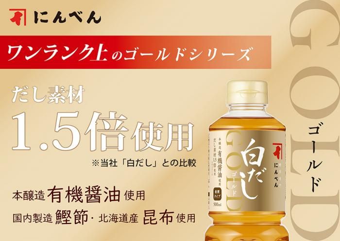 だしの風味を磨き上げてより美味しくなった、白だしゴールド。