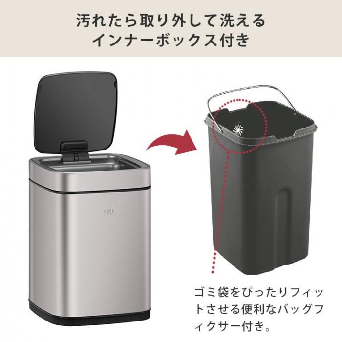 インナーボックスは汚れたら取り外して洗え、清潔に使えます。ゴミ袋をぴったりフィットさせることができる便利なバッグフィクサー付き。
