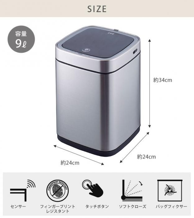 エコスマート X 充電式センサービンは6L、9L、12Lの3サイズ展開。洗面所や化粧台まわり、寝室などにおすすめです。