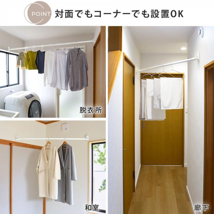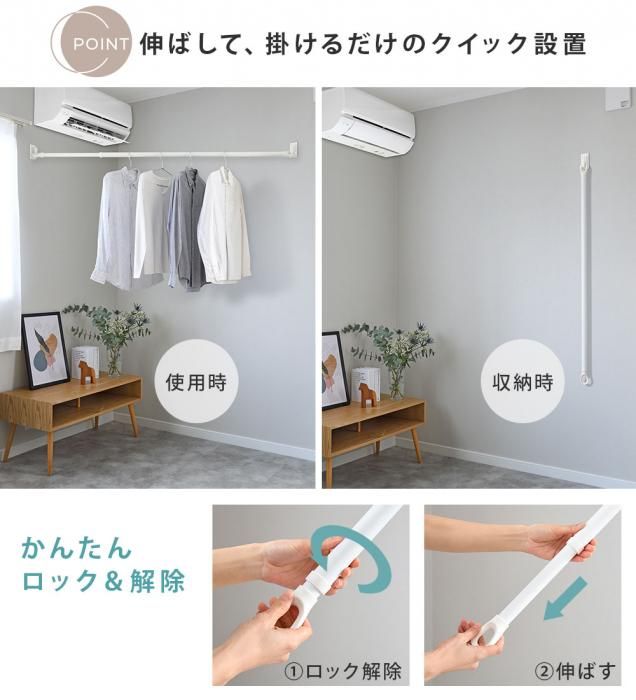 サッと伸ばせる伸縮竿で、必要な時だけ物干し空間に。お部屋のインテリアを邪魔しません。