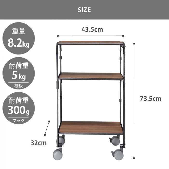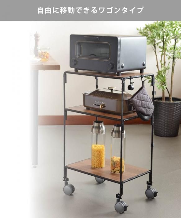 キャスターによる機動性を活かし、収納時は壁際へと室内を自由に移動させて使えるワゴンタイプの家電ラックです。