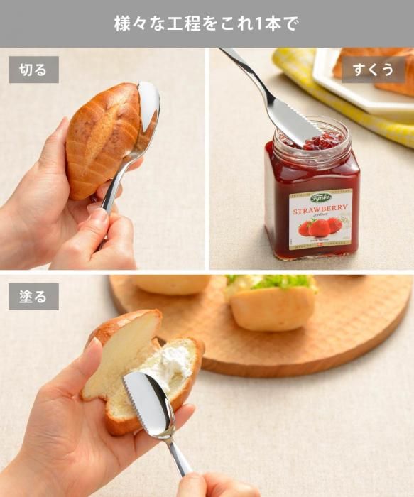 ● 一本でパンに切れ目を入れて、バターなどを塗れるナイフです。