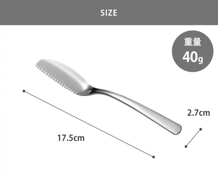 ヘラ部分のギザ刃でスムーズにパンをカットできます。バターも薄く削り取れます。