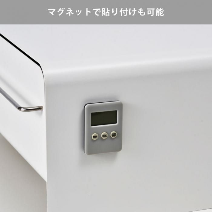 本体は丈夫なスチール製でマグネットがつきます。キッチンタイマーやレシピなどが貼り付けられるので便利です。