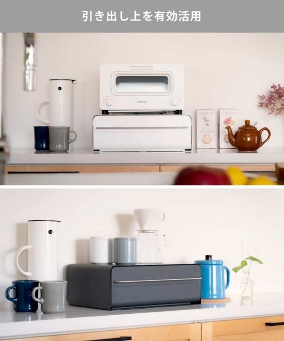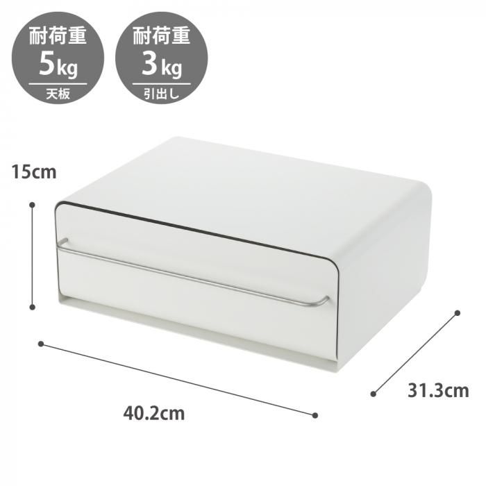 天板の耐荷重は5kg。トースターやケトルなどのキッチン家電を載せれば引き出し上を有効活用できます。