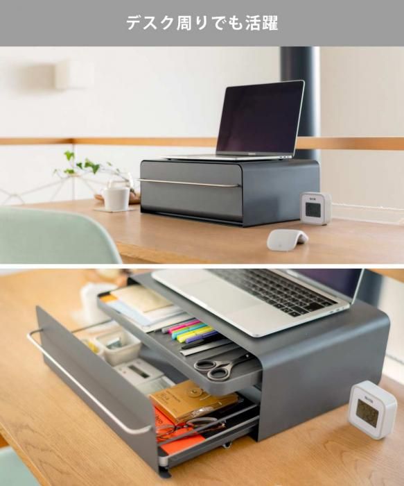 使用頻度の高いステーショナリー類やA4書類、封書、ケーブル類をまとめて収納できます。ノートパソコンを置いて使用すれば手軽に引き出し収納を増やせます。