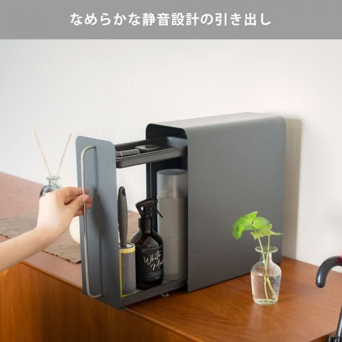 空きスペースに置きやすく場所を取らない幅13cmのスリムサイズ。玄関で置き場所に困る鍵や印鑑、スプレー缶などを隠して収納できます。