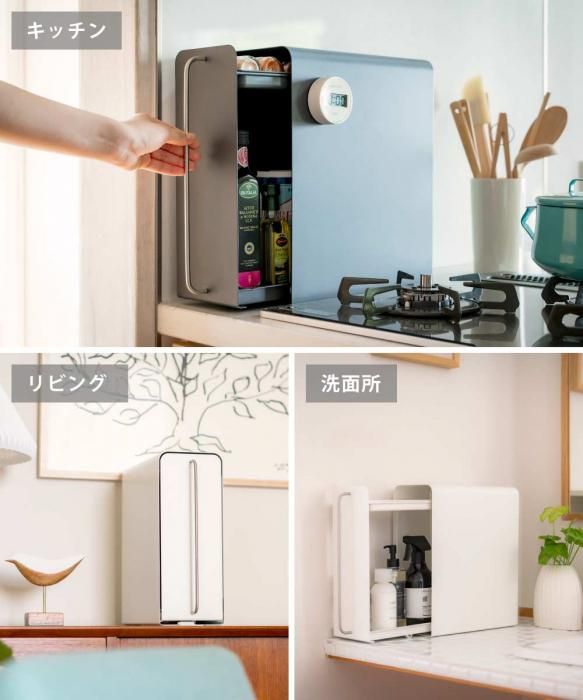 キッチンではスパイスや調味料など、普段は隠しておきたい物の収納に。リビングではハンドクリームや消臭スプレーなど、散らかりがちな場所の収納に。