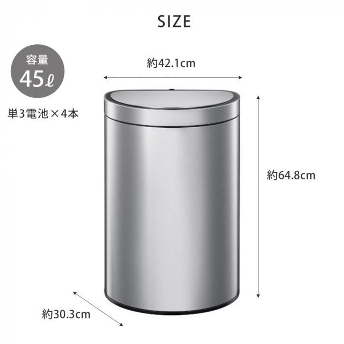 丸型でありながら壁面にぴったり付けられるセミラウンド型のセンサー式ゴミ箱。