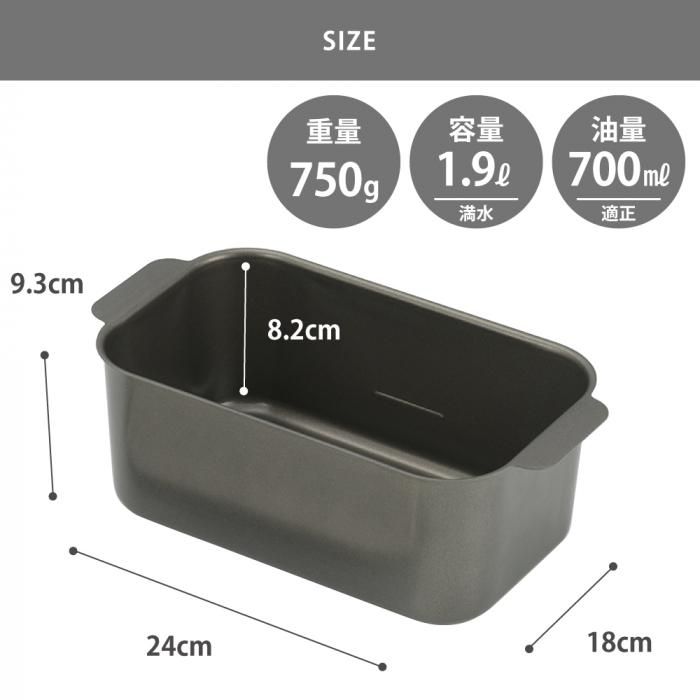 食彩亭 角型蓋付天ぷら鍋 TP-15 送料無料 分類で探す キッチングッズ 鍋 天ぷら鍋 ブランドで探す タマハシ 価格帯(税込) 2,000円台の商品 キッチン 送料無料 ラッピング承ります 少ない油で長さのある食材も揚げやすい長角型の天ぷら鍋です 保管に便利なフタは調理時にはバットとして使用でき 二役こなせます ツマミが無い分収納時もコンパクトです tamahashi-tp15 2,640円(税込) 0円 在庫入荷待ち角型蓋付天ぷら鍋2,640円(税込)2,640円(税込) 数量 カートに入れる 製品について性能詳細お買い物ガイドクロッカについて コンパクトなのに、なが〜い食材も調理しやすい角型天ぷら鍋 少量の油でも長い食材が揚げられる!保管に便利な蓋付。丸鍋では揚げにくい、エビやアスパラなど長さのある食材も揚げやすい長角型。保管に便利なフタは調理時にはバットとして使用でき、二役こなせます。ツマミが無い分収納時もコンパクトです。ガス火・IH電磁調理器100V・200V対応。 サイズ約240×180×93mm(満水容量1,900ml・適正油量700ml)深さ:82mm 重量約750g 材質・仕様本体:鉄(シリコン焼付け塗装)底の厚さ:1.2mm蓋:鉄(シリコン焼付け塗装) 生産国中国 備考天ぷら・揚げ物専用 サイズ鍋本体のみ 鍋 + アミ・温度計製造元タマハシRERATED ITEMS関連商品富士ホーロー 天ぷら鍋 24cm TP-24富士ホーロー よくばり天ぷら鍋富士ホーロー 天ぷら鍋・オイルポット・網付きホーロー容器 調理器具3点セット富士ホーロー 片手天ぷら鍋 16cm C-16STP極ジャパン 天ぷら鍋 S 20cm 揚げ網付き極ジャパン 天ぷら鍋 M 24cm 菜箸・揚げ網付き