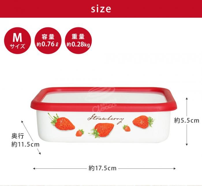 ストロベリー 浅型角容器 M 富士ホーロー STB-M 分類で探す キッチングッズ キッチン小物 保存容器 キャニスター ブランドで探す 富士ホーロー ストロベリー Strawberry 価格帯(税込) 2,000円台の商品 キッチン 送料無料 ラッピング承ります レトロでかわいいストロベリー柄 ガラス質で衛生的 様々な食材のストックに使えるホーロー容器fuji-stbm 2,200円(税込) 在庫入荷待ち浅型角容器 M2,200円(税込)在庫なし2,200円(税込) 数量 カートに入れる 製品について性能詳細お買い物ガイドクロッカについてガラス質で衛生的、様々な食材のストックに使えるホーロー容器 ホーローは熱効率が高く、お湯が早く沸騰することができます。比較的少ない火力で茹で・蒸し・煮込みができるので環境にもやさしく、経済的にも優れた商品です。 こちらの保存容器はオーブンにも、ガス火にもかけられます。(IH不可) サイズ約W17.5×D11.5×H5.5cm 重量約280g 満水容量0.76L 材質ほうろう用鋼板(本体)、エラストマー(ふた) ホーローについて手作業で釉薬を掛けるため、ひとつひとつの表情には多少の個体差が生じます。ホーローの性質上、焼成時に黒点や色むらの様に見える部位が生じる場合がございます。鋼板の切り口となる部分は釉薬がかかりにくく、下地の黒いスジが多少見られますが黒い部分もホーロー加工が施されております。上記の様な場合でも不良ではなくご使用には問題ございませんので安心してお使い下さい。 備考○タイ工場製(富士ホーロー 自社工場)○オーブンに使用する際は、フタを外してご使用ください。○電子レンジ使用不可○食洗機使用不可 サイズS M L製造元富士ホーロー -ふじほうろうふじほーろーRERATED ITEMS関連商品コンテ 深型容器 角型 S KE-DS.LW富士ホーロー 深型容器 角型 M富士ホーロー 深型容器 角型 L富士ホーロー 浅型容器 角型 L富士ホーロー 浅型容器 角型 S富士ホーロー みそポット C-KP
