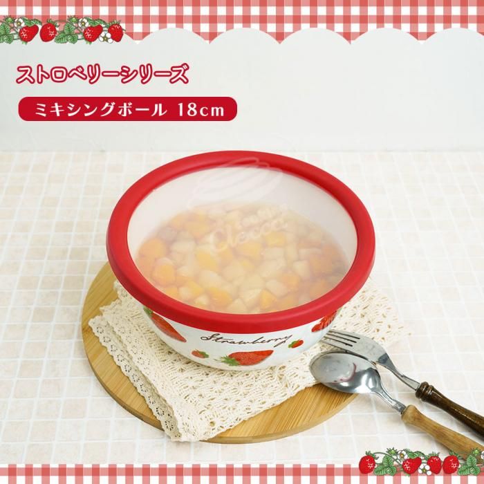 ストロベリー ミキシングボール 18cm 富士ホーロー STB-18MB 送料無料 分類で探す キッチングッズ キッチン小物 保存容器 キャニスター ブランドで探す 富士ホーロー ストロベリー Strawberry 価格帯(税込) 2,000円台の商品 キッチン 送料無料 ラッピング承ります レトロでかわいいストロベリー柄 ガラス質で衛生的 様々な食材のストックに使えるホーロー容器 fuji-stb18mb 2,420円(税込) 0円 在庫入荷待ちミキシングボール 18cm2,420円(税込)在庫なし2,420円(税込) 数量 カートに入れる 製品について性能詳細お買い物ガイドクロッカについて ガラス質で衛生的、様々な食材のストックに使えるホーロー容器 食材の保存やボウルとして料理の下ごしらえにも使える丸型ホーロー容器です。ホーローは酸や塩分に強いため、食材を選ばず保存ができます。表面のガラス質は汚れが付きにくく、匂いうつりも少ないので、味噌やキムチなどの発酵性食品の保存にも適しています。 サイズ約W19×D19×H9.5cm 重量約420g 満水容量1.8L 材質ほうろう用鋼板(本体)、エラストマー(ふた) ホーローについて 手作業で釉薬を掛けるため、ひとつひとつの表情には多少の個体差が生じます。 ホーローの性質上、焼成時に黒点や色むらの様に見える部位が生じる場合がございます。 鋼板の切り口となる部分は釉薬がかかりにくく、下地の黒いスジが多少見られますが黒い部分もホーロー加工が施されております。上記の様な場合でも不良ではなくご使用には問題ございませんので安心してお使い下さい。 備考 タイ工場製(富士ホーロー 自社工場) オーブンに使用する際は、フタを外してご使用ください。 電子レンジ使用不可 食洗機使用不可 サイズ14cm 18cm 22cm製造元富士ホーロー -ふじほうろうふじほーろーRERATED ITEMS関連商品コンテ 深型容器 角型 S KE-DS.LW富士ホーロー 深型容器 角型 M富士ホーロー 深型容器 角型 L富士ホーロー 浅型容器 角型 L富士ホーロー 浅型容器 角型 S富士ホーロー みそポット C-KP