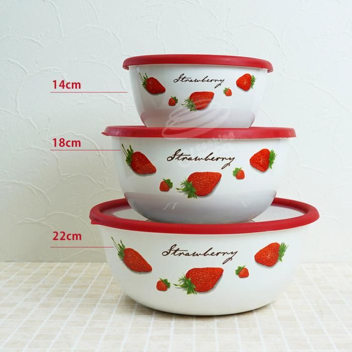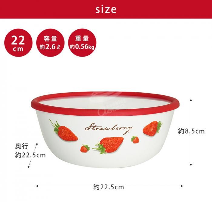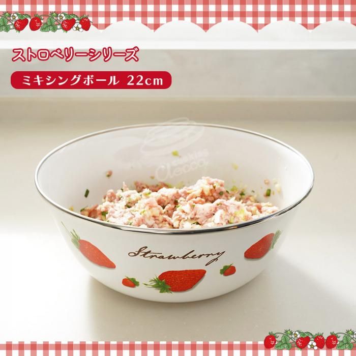ストロベリー ミキシングボール 22cm 富士ホーロー STB-22MB 送料無料 分類で探す キッチングッズ キッチン小物 保存容器 キャニスター ブランドで探す 富士ホーロー ストロベリー Strawberry 価格帯(税込) 2,000円台の商品 キッチン 送料無料 ラッピング承ります レトロでかわいいストロベリー柄 ガラス質で衛生的 様々な食材のストックに使えるホーロー容器fuji-stb22mb 2,500円(税込)0円 在庫入荷待ちミキシングボール 22cm2,500円(税込)在庫なし2,500円(税込) 数量 カートに入れる 製品について性能詳細お買い物ガイドクロッカについてガラス質で衛生的、様々な食材のストックに使えるホーロー容器 食材の保存やボウルとして料理の下ごしらえにも使える丸型ホーロー容器です。ホーローは酸や塩分に強いため、食材を選ばず保存ができます。表面のガラス質は汚れが付きにくく、匂いうつりも少ないので、味噌やキムチなどの発酵性食品の保存にも適しています。 サイズ約W22.5×D22.5×H8.5cm 重量約560g 満水容量2.6L 材質ほうろう用鋼板(本体)、エラストマー(ふた) ホーローについて手作業で釉薬を掛けるため、ひとつひとつの表情には多少の個体差が生じます。ホーローの性質上、焼成時に黒点や色むらの様に見える部位が生じる場合がございます。鋼板の切り口となる部分は釉薬がかかりにくく、下地の黒いスジが多少見られますが黒い部分もホーロー加工が施されております。上記の様な場合でも不良ではなくご使用には問題ございませんので安心してお使い下さい。 備考○タイ工場製(富士ホーロー 自社工場)○オーブンに使用する際は、フタを外してご使用ください。○電子レンジ使用不可○食洗機使用不可 サイズ14cm 18cm 22cm製造元富士ホーロー -ふじほうろうふじほーろーRERATED ITEMS関連商品コンテ 深型容器 角型 S KE-DS.LW富士ホーロー 深型容器 角型 M富士ホーロー 深型容器 角型 L富士ホーロー 浅型容器 角型 L富士ホーロー 浅型容器 角型 S富士ホーロー みそポット C-KP