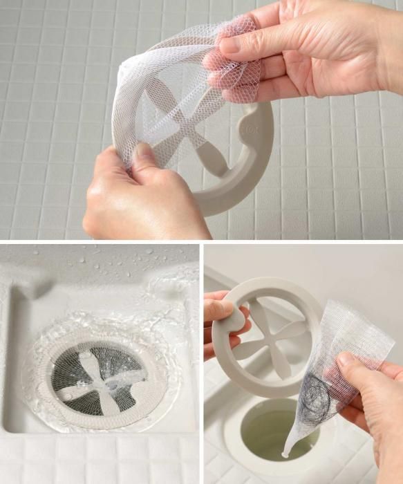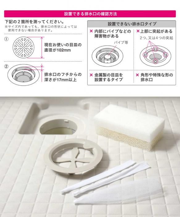 市販の排水口ネットをかぶせて排水口にセットするだけの簡単設置
