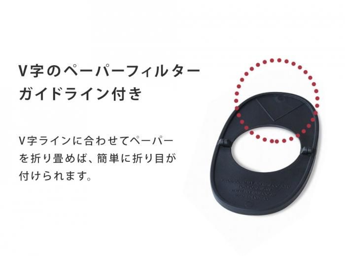 また、本体にはV時のペーパーフィルターガイドライン付き。このV字ラインに合わせてペーパーを折り畳めば、簡単に折り目が付けられます。