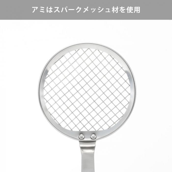 茹でもの、揚げ物も素早くすくえ、湯切れ、油切れのよいメッシュタイプのステンレス網。