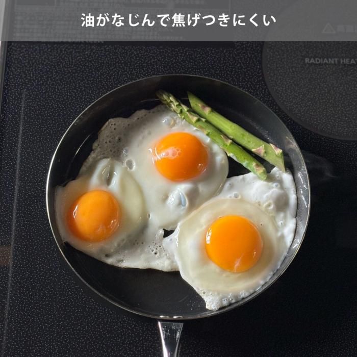 高温を維持しながら焼くことがポイントで、保温性の高い鉄フライパンだからこそ、目玉焼きがより美味しく焼くことができます。