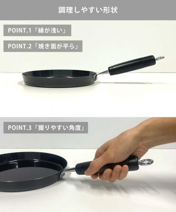 高温でサッと焼いた方が美味しくなる玉子焼きは、鉄との相性抜群です。