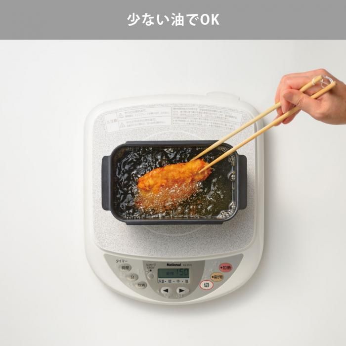 ポコフリット 角型揚げ鍋ワイド(温度計付き)RB-2927 送料無料 分類で探す キッチングッズ 鍋 天ぷら鍋 ブランドで探す 和平フレイズ ポコフリットpocofritto 価格帯(税込) 5,000円台の商品 キッチン用品 送料無料 ラッピング承ります 揚げモノ調理をもっと快適にすることを考えた使いやすい揚げ鍋 角型だから エビフライなどの長い食材もゆったり揚げられます 蓋がバットになるので一石二鳥 freiz-pocofritto-rb-2927 2,750円(税込)0円 SOLD OUT 製品について性能詳細お買い物ガイドクロッカについて大きめの食材もゆったり揚げられるワイドタイプの揚げ鍋 大きめの食材もゆったり揚げられるワイドタイプ。角型だから、エビフライなどの長い食材もゆったり揚げられます。蓋がバットになるので一石二鳥。使用後の油の移し替えは、角を伝ってスムーズに行えます。揚げモノ調理をもっと快適にすることを考えた使いやすい揚げ鍋です。 サイズ約W24.5×D17×H10cm 重量約960g 材質本体:鉄(シリコン樹脂塗装)蓋:鉄(ふっ素樹脂塗膜加工)アミ:鉄(クロームメッキ) 満水容量約2.2L 生産国中国 RERATED ITEMS関連商品富士ホーロー 天ぷら鍋 24cm TP-24富士ホーロー よくばり天ぷら鍋富士ホーロー 天ぷら鍋・オイルポット・網付きホーロー容器 調理器具3点セット富士ホーロー 片手天ぷら鍋 16cm C-16STP極ジャパン 天ぷら鍋 S 20cm 揚げ網付き極ジャパン 天ぷら鍋 M 24cm 菜箸・揚げ網付き