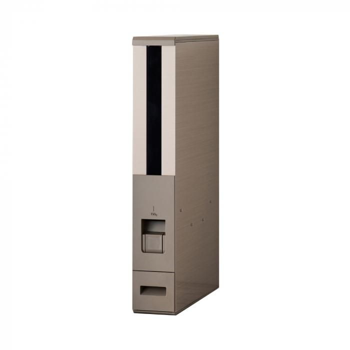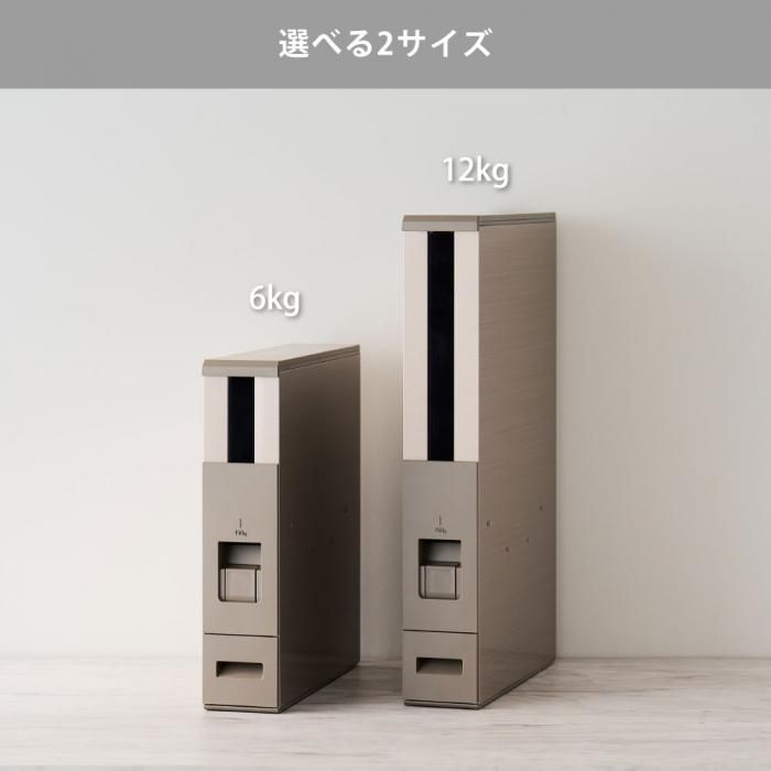 幅10cmでキッチンの隙間などに収納できる丈夫な鋼板製の米びつです。