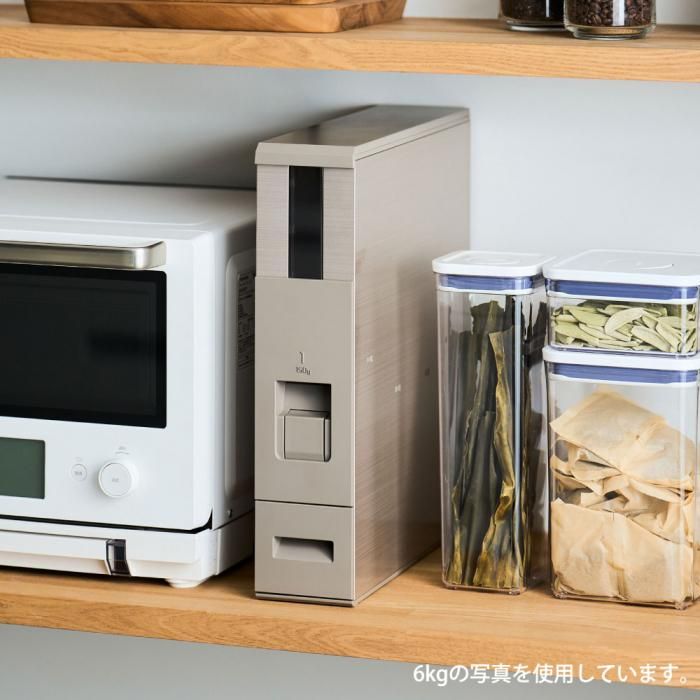 キッチンのわずかな隙間にぴったり収まるスリムな米びつ