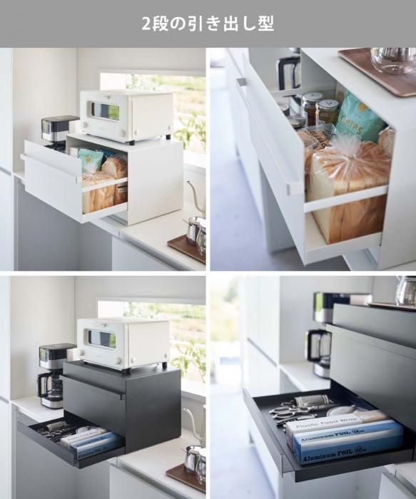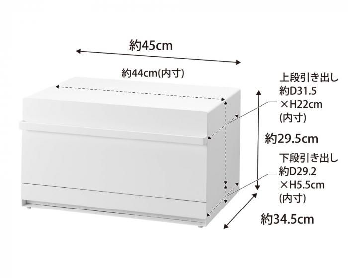 タワー ブレッドケース 引き出し型2段 1857/1858 送料無料 分類で探す キッチングッズ キッチン収納 その他キッチン収納 ブランドで探す 山崎実業 タワー tower 価格帯(税込) 1万円台の商品 キッチン用品 送料無料 ラッピング承ります パンや調味料 ラップや調理道具をすっきり隠して収納できる2段の引き出し型ブレッドケース パンやお菓子 調味料などを隠しながら美しく収納できます tower-1857-8 12,650円(税込)0円 在庫入荷待ちホワイト12,650円(税込)在庫なし12,650円(税込)在庫なしブラック12,650円(税込)在庫なし12,650円(税込)在庫なし SOLD OUT 製品について性能詳細お買い物ガイドクロッカについてすっきり隠して収納できる2段の引き出し型ブレッドケース パンや調味料、ラップや調理道具をすっきり隠して収納できる2段の引き出し型ブレッドケース。キッチンカウンターなどで雑然としがちなパンやお菓子、調味料などを隠しながら美しく収納できます。高さの違う上下の引き出しにたっぷり収納できます。上段引き出しには、パンや食品の保管に便利な深さです。下段引き出しは浅めなので、ラップや調理道具、トレーなどの収納に。スチール製なのでマグネットがつけられて便利です。 材質スチール(粉体塗装) サイズ約W45×D34.5×H29.5cm 内寸サイズ上段引き出し:約W44×D31.5×H22cm下段引き出し:約W44×D29.2×H5.5cm 重量約10.3kg 耐荷重天板:約6kg上段引き出し(天板に物を置かない場合):約1.5kg上段引き出し(天板に約500gの物を置いた場合):約2kg下段引き出し:約1.5kg 備考中国 ブランド 製造元tower -タワー 山崎実業RERATED ITEMS関連商品タワー ディッシュストレージ 7488/7489タワー 冷蔵庫横マグネット収納ポケット3段 4496/4497タワー スリム マグボトル&コップラック 5643/5644リン ティッシュ&トイレットペーパーケース 5469/5470タワー スリムプラスチックバッグケース 3976/3977タワー 隠せる調味料ラック 2段 4334/4335タワー ツーウェイ キッチン家電下引き出し&スライドテーブル 2007/2008タワー キッチン家電下スライドテーブル 2105/2106タワー 下が拭けるコンロ横ラック 2段 1991/1992タワー 引き出し付きキッチン家電下ラック 2018/2019