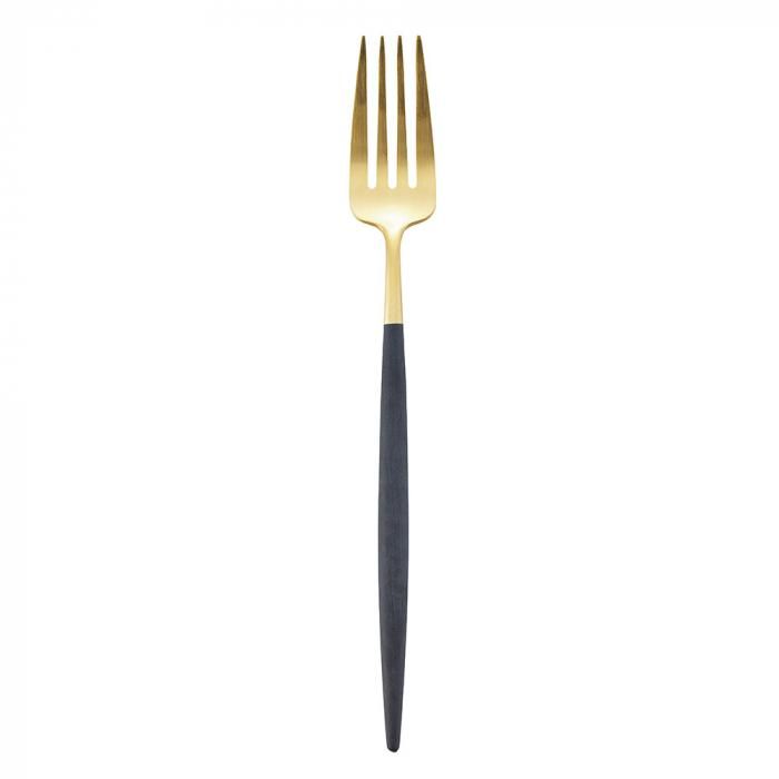 ブラックとゴールドのツートーンでシンプルながらも細い柄とゆるやかな曲線を描くフォルムが魅力。洋食器から和食器まで合わせるテーブルウェアを選びません。