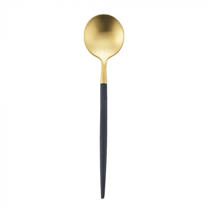 ブラックとゴールドのツートーンでシンプルながらも細い柄とゆるやかな曲線を描くフォルムが魅力。洋食器から和食器まで合わせるテーブルウェアを選びません。
