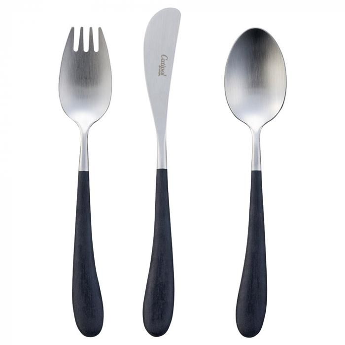 クチポールのこども用ナイフ、フォーク、スプーンの3本セット。入学式、七五三など、節目でのプレゼントにもおすすめです。