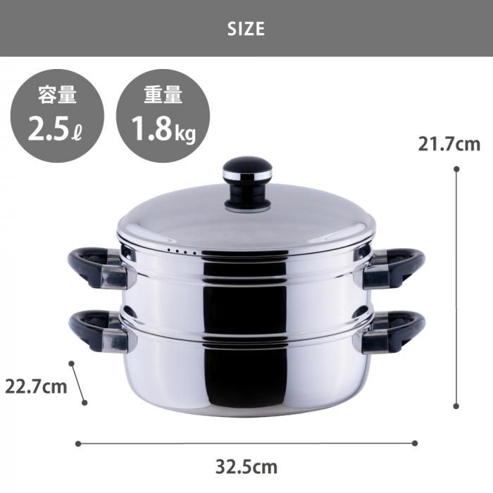 オブジェ 蒸し器 22cm OJ-7-6 送料無料 分類で探す キッチングッズ キッチン小物 調理ツール 蒸し器 ブランドで探す 宮崎製作所 オブジェ Objet 価格帯(税込) 1万円台の商品 キッチン用品 送料無料 ラッピング承ります 一度にたくさん作るときに活躍する本格派蒸し器 熱の伝わりが良く 保温性に優れた全面三層鋼を採用しています 電磁調理器にも使え きれいに安全に料理を楽しめますmz-oj-7-6 メーカー希望小売価格14,850円(税込) 14,850円(税込)0円 数量 カートに入れる 製品について性能詳細お買い物ガイドクロッカについて一度にたくさん作るときに活躍する本格派蒸し器 熱の伝わりが良く、保温性に優れた全面三層鋼の蒸し器。一度にたくさん作るときに活躍します。電磁調理器にも使え、きれいに安全に料理を楽しめます。またシンプルなデザインが魅力です。下鍋は普通の鍋として煮物や鍋物にも使えます。 サイズ約W32.5×D22.7×H21.7cm 材質本体:18-10ステンレス、鉄芯、18-10ステンレス(全面鉄芯三層鋼)蓋:18-8ステンレスつまみ、ハンドル:フェノール樹脂蒸し器:18-8ステンレス 重量約1800g 容量約5合まで 対応熱源ガスコンロ(直火)、IH(200V)、ハロゲンヒーター、クッキングヒーター 生産国日本 備考電子レンジではご使用頂けません。 サイズ22cm 25cm 28cmRERATED ITEMS関連商品フルータスコレクション 両手鍋 18cm FTC-18W 富士ホーローフルータスコレクション 両手鍋 20cm FTC-20W 富士ホーロー