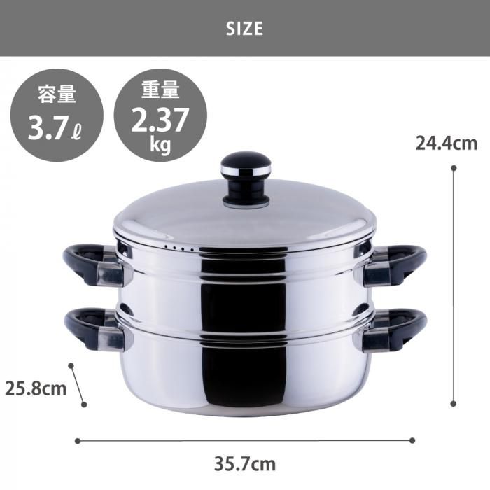 オブジェ 蒸し器 25cm OJ-8-3 送料無料 分類で探す キッチングッズ キッチン小物 調理ツール 蒸し器 ブランドで探す 宮崎製作所 オブジェ Objet 価格帯(税込) 1万円台の商品 キッチン用品 送料無料 ラッピング承ります 一度にたくさん作るときに活躍する本格派蒸し器 熱の伝わりが良く 保温性に優れた全面三層鋼を採用しています 電磁調理器にも使え きれいに安全に料理を楽しめます mz-oj-8-3 メーカー希望小売価格17,050円(税込) 12,782円(税込)0円 SOLD OUT 製品について性能詳細お買い物ガイドクロッカについて一度にたくさん作るときに活躍する本格派蒸し器 熱の伝わりが良く、保温性に優れた全面三層鋼の蒸し器。一度にたくさん作るときに活躍します。電磁調理器にも使え、きれいに安全に料理を楽しめます。またシンプルなデザインが魅力です。下鍋は普通の鍋として煮物や鍋物にも使えます。 サイズ約W35.7×D25.8×H24.4cm 材質本体:18-10ステンレス、鉄芯、18-10ステンレス(全面鉄芯三層鋼)蓋:18-8ステンレスつまみ、ハンドル:フェノール樹脂蒸し器:18-8ステンレス 重量約2370g 容量約8合まで 対応熱源ガスコンロ(直火)、IH(200V)、ハロゲンヒーター、クッキングヒーター 生産国日本 備考電子レンジではご使用頂けません。 サイズ22cm 25cm 28cmRERATED ITEMS関連商品フルータスコレクション 両手鍋 18cm FTC-18W 富士ホーローフルータスコレクション 両手鍋 20cm FTC-20W 富士ホーロー