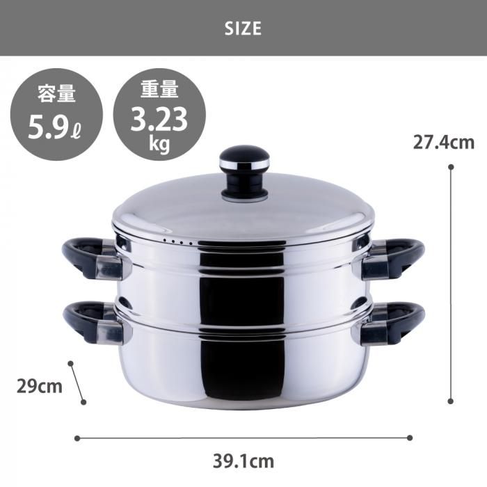 オブジェ 蒸し器 28cm OJ-19-1S 送料無料 分類で探す キッチングッズ キッチン小物 調理ツール 蒸し器 ブランドで探す 宮崎製作所 オブジェ Objet 価格帯(税込) 2万円台の商品 キッチン用品 送料無料 ラッピング承ります 一度にたくさん作るときに活躍する本格派蒸し器 熱の伝わりが良く 保温性に優れた全面三層鋼を採用しています 電磁調理器にも使え きれいに安全に料理を楽しめますmz-oj-19-1s メーカー希望小売価格22,000円(税込) 22,000円(税込)0円 数量 カートに入れる 製品について性能詳細お買い物ガイドクロッカについて一度にたくさん作るときに活躍する本格派蒸し器 熱の伝わりが良く、保温性に優れた全面三層鋼の蒸し器。一度にたくさん作るときに活躍します。電磁調理器にも使え、きれいに安全に料理を楽しめます。またシンプルなデザインが魅力です。下鍋は普通の鍋として煮物や鍋物にも使えます。 サイズ約W39.1×D29×H27.4cm 材質本体:18-10ステンレス、鉄芯、18-10ステンレス(全面鉄芯三層鋼)蓋:18-8ステンレスつまみ、ハンドル:フェノール樹脂蒸し器:18-8ステンレス 重量約3230g 容量約一升まで 対応熱源ガスコンロ(直火)、IH(200V)、ハロゲンヒーター、クッキングヒーター 生産国日本 備考電子レンジではご使用頂けません。 サイズ22cm 25cm 28cmRERATED ITEMS関連商品フルータスコレクション 両手鍋 18cm FTC-18W 富士ホーローフルータスコレクション 両手鍋 20cm FTC-20W 富士ホーロー