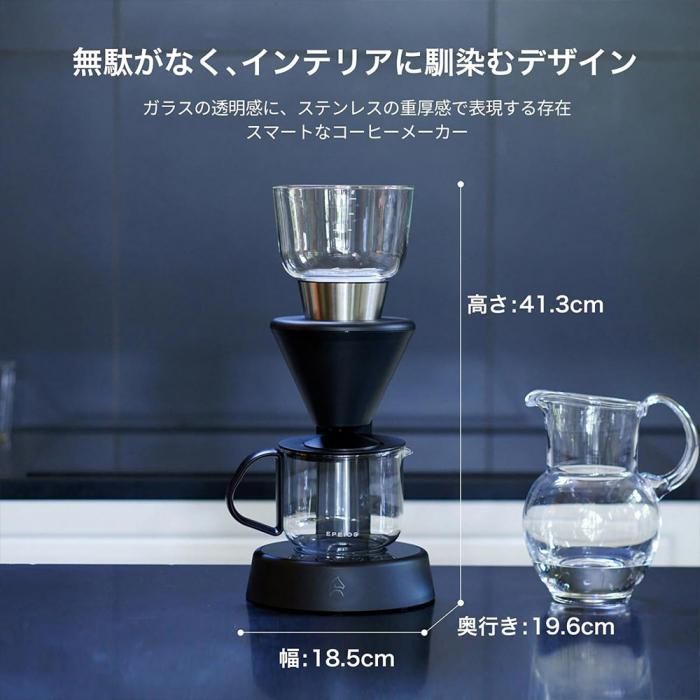専用アプリ「EPEIOS Life」(IoT機能)を活用することで、お湯の温度を2度単位、湯量を10ml単位と細かく設定が可能。コーヒー粉の種類によって抽出方法をきめ細やかに設定・登録すると、いつでも簡単に美味しいコーヒーを淹れることができます。