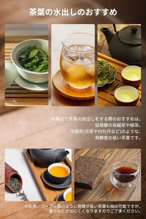 コールドブリューコーヒー以外にも、お茶やフレーバーウォーター、水出汁など色々な用途で楽しめます。